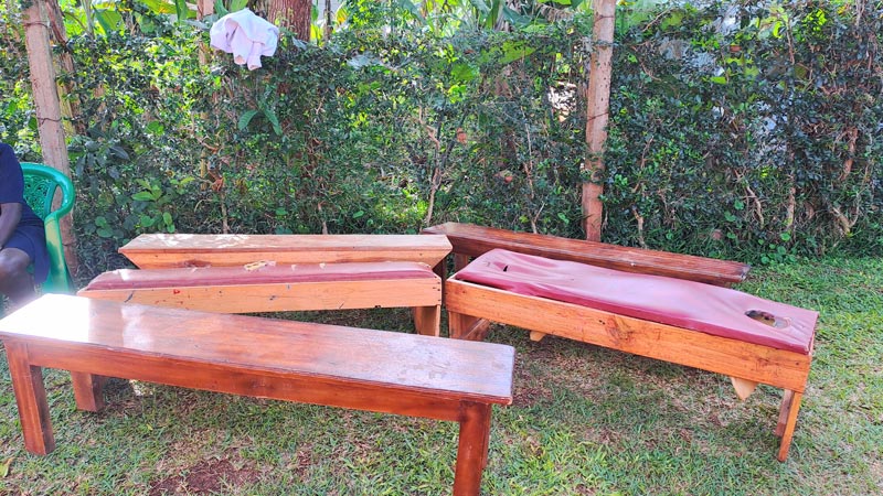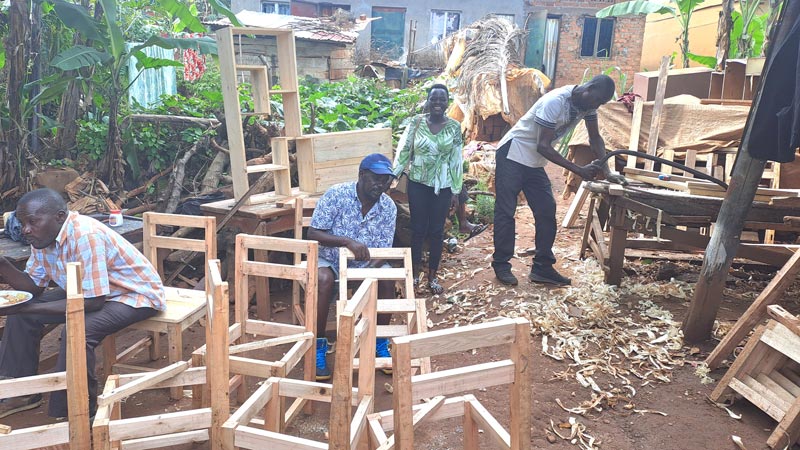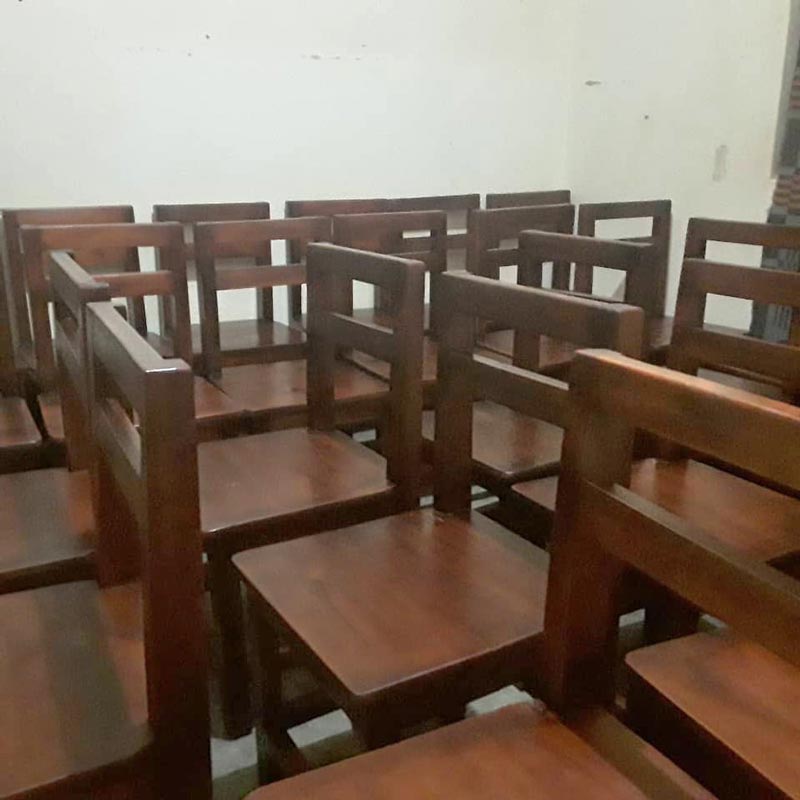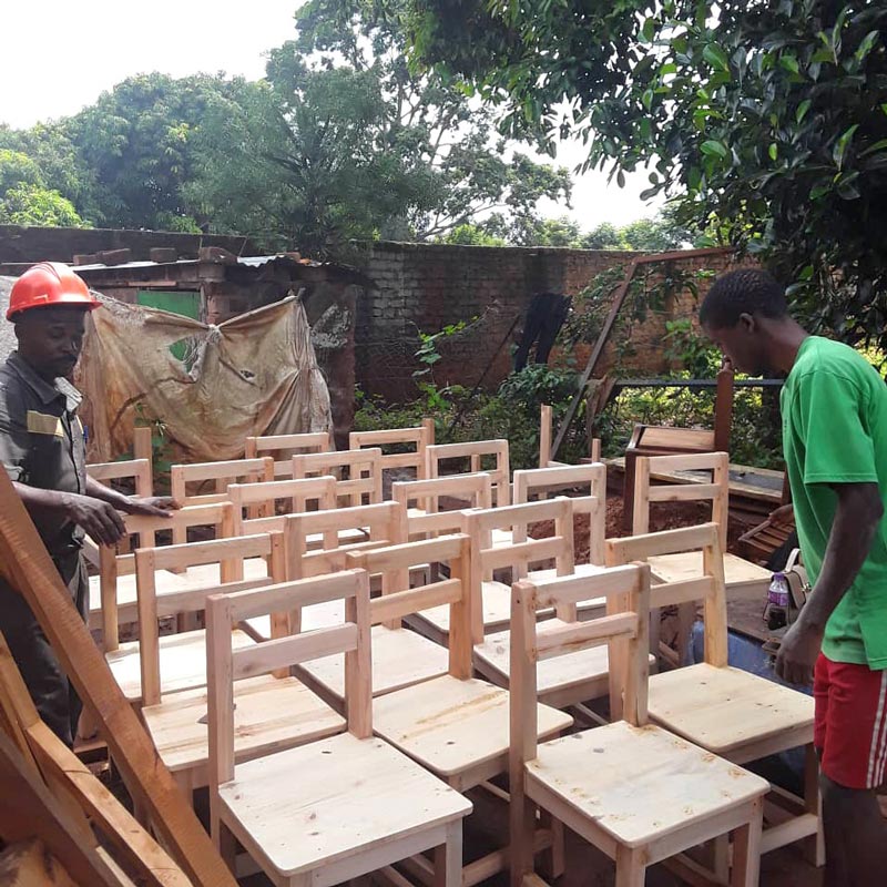 Die Sitzgelegenheiten für die 25 im home wohnenden Kinder waren mittlerweile unzureichend bzw. beschädigt, deshalb haben wir in einer Uganda-typischen Tischlerei, die hauptsächlich im Außenbereich arbeitet, 25 neue, stabile Hartholzstühle bestellt.
