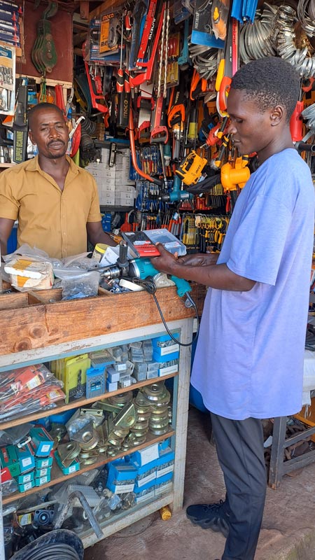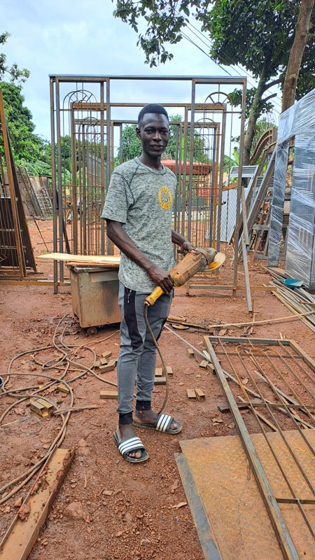Schon bald sind beide fertig mit der praktischen Ausbildung und haben evtl. die Chance von den Betrieben übernommen zu werden. Allerdings gibt es hierfür Voraussetzungen, die ungewöhnlich sind und in einem mitteleuropäischen Sozialstaat ein „no go“ wären: Die Beiden müssen ihre eigenen Elektro-Maschinen und Werkzeuge mitbringen. Das ist natürlich ein Kostenfaktor, der von vielen Menschen nicht gestemmt werden kann. Genauso musste Agandi für die Ausbildungen bezahlen. Es ist nicht etwa umgekehrt, dass der Jugendliche eine kleine Bezahlung erhält! Hierfür konnten die Beiträge der Paten von Marvin und James eingesetzt werden. Da beide täglich nach der Arbeit nachhause gehen, fallen keine Kosten für die Unterkunft an und wir konnten von den Monatsbeiträgen der Paten Einiges sparen, was wir jetzt zum Teil in die Anschaffung der Arbeitsgeräte investieren können. Für Marvin haben wir schon Bohrmaschine, Kreissäge und Stichsäge gekauft. Die Geräte für James fehlen noch. Teilweise „sprengen“ sie jedoch das Budget und wir hoffen auf Einzelspenden, die dafür eingesetzt werden können.